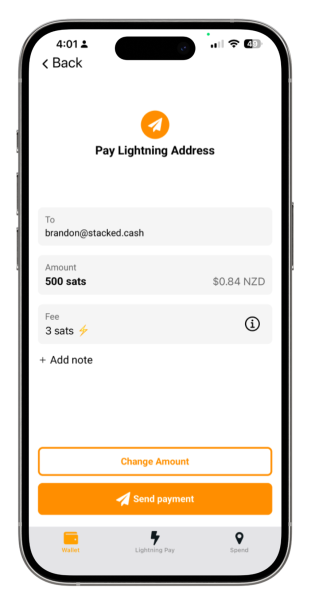 - Scan a QR code, paste a Lightning invoice or Lightning Address, or enter it manually